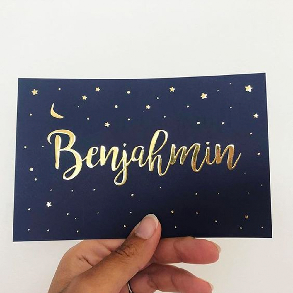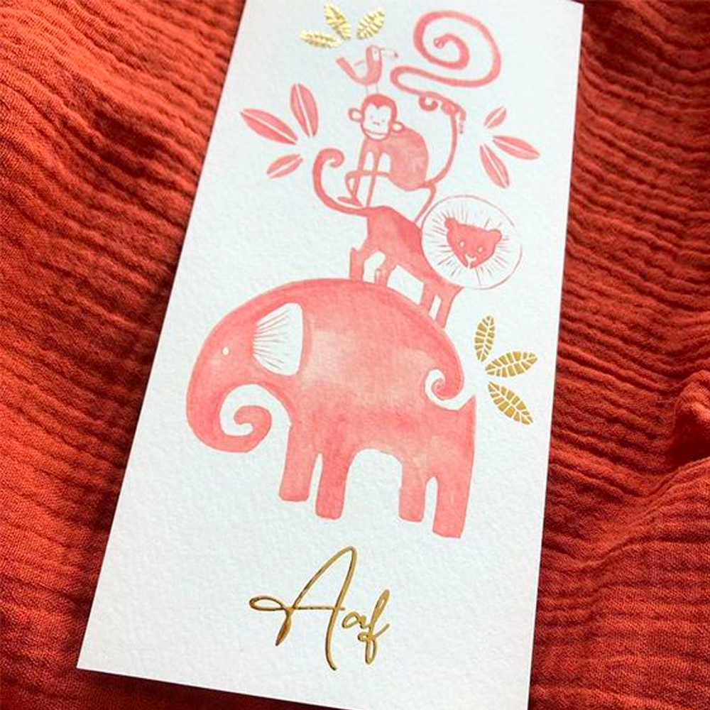 De goud-look op de bestaande kaartjes is folie look a like, dit is verwerkt in het ontwerp. Het ziet er dus een beetje goud uit maar het is niet hetzelfde als foliedruk. De goud-look is in het ontwerp verwerkt en zal gewoon worden mee gedrukt met de rest van het kaartje, dit kan op elke papiersoort. Mocht je een item of bijvoorbeeld de naam graag zien in deze goud-look dan is dit mogelijk. Stuur ons een mailtje en onze design studio gaat voor je aan de slag.
